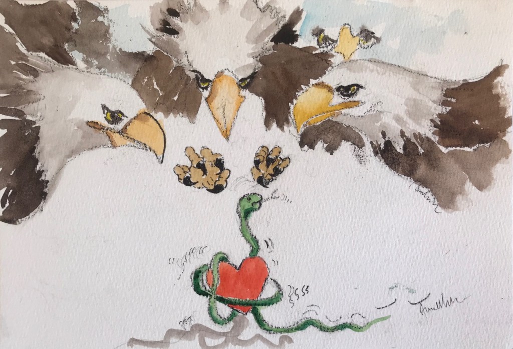 And then there was the explosion followed by an implosion in another chat group. There was a convocation of eagles on patrol that morning. More a con, they made it their vocation to lecture all when the need was not there. They circled the skies furiously and hunted in unison for the unknown snake. They repeatedly dived from great heights to attack the snake and eventually bit its head off. The eagles screeched and beseeched all with the following announcement:
