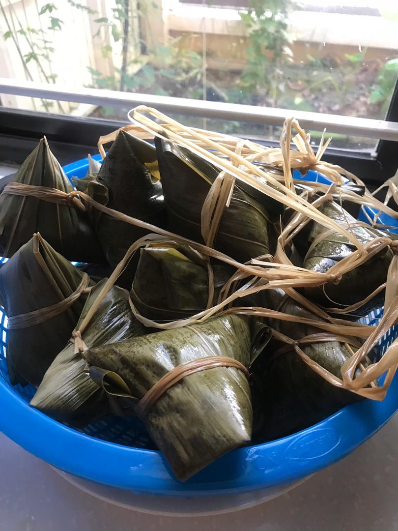 Osmosis, that’s the word I couldn’t recall. I’m in Kuala Lumpur! It feels like home even though I’m still a fair distance from Penang, my birthplace. To welcome us, my sister-in-law made us a bunch of rice dumplings wrapped in bamboo leaves. She knows our penchant for bachang ( in Hokkien) or Zongzi, in Mandarin. She has raved for years about how delicious her Zongzi is, her adoring and very biased husband praising them as the most delicious and incomparable Zongzi ever.