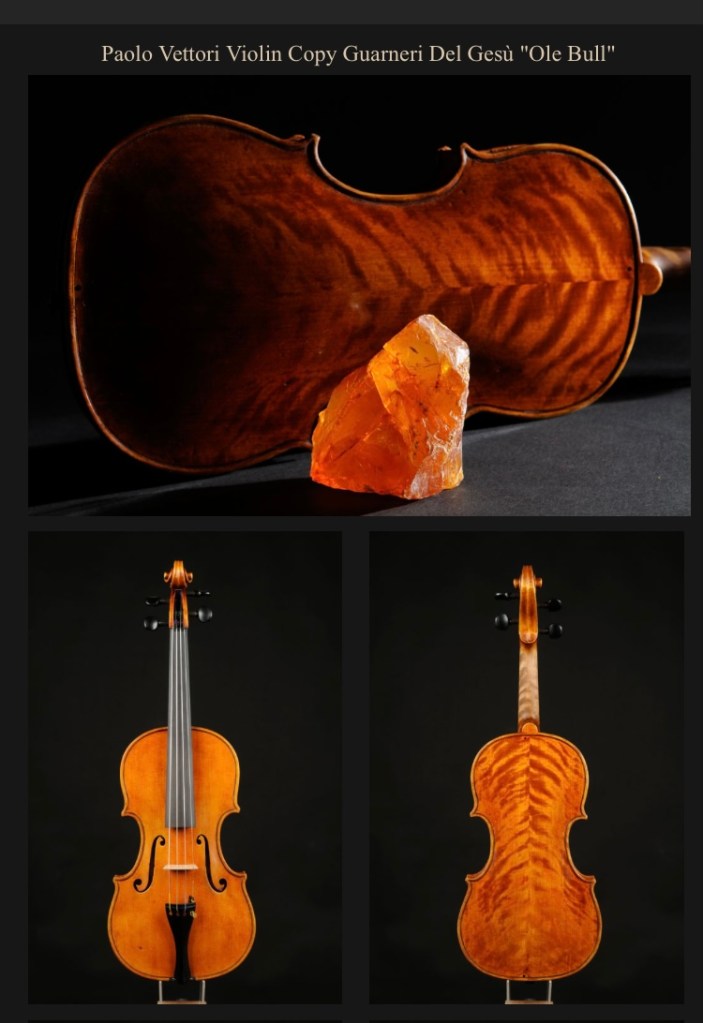 No bull, but I am so very happy to know Paolo Vettori will be making me a copy of 1744 Guarneri Del Gesù ‘Ole Bull’. I hope she will turn out totally the way I have imagined her to be. I can’t wait to test her G-string or caress her slender neck with my left hand whilst running my fingers along it. The one thing I won’t do is tightly grip her throat. Her tone from her rounded F-holes will no doubt be alluring. The turns of her scroll flare outward when looking at her front or back, quite typical of a late Del Gesù. Her two-piece back will be revealing to all who want to take a peep and her arching, hopefully full and curvaceous, will flatten in the centre. She isn’t a cello, so although I can’t squeeze her between my legs, I can surely hold her comfortably between my chin and neck. Her body is surprisingly compact, measuring an ample 35.2cm but it is her sexy curves that will capture my attention. Those curves are accentuated by a slimmer upper bouts and more rounded lower bouts. Her C-bout ribs are said to be attractive, but I have never formed a penchant for ribs. I will need to practise my “finger exercises” to improve my fingering technique on her. Her purfling should be inlaid in a neatly formed channel, the white section is probably maple – wouldn’t that just make her purr? I have not considered getting a new bow yet. I’m still pleased with the stick I have. This is indeed a happy Year of the Bull! Heng Ah! Ong Ah!