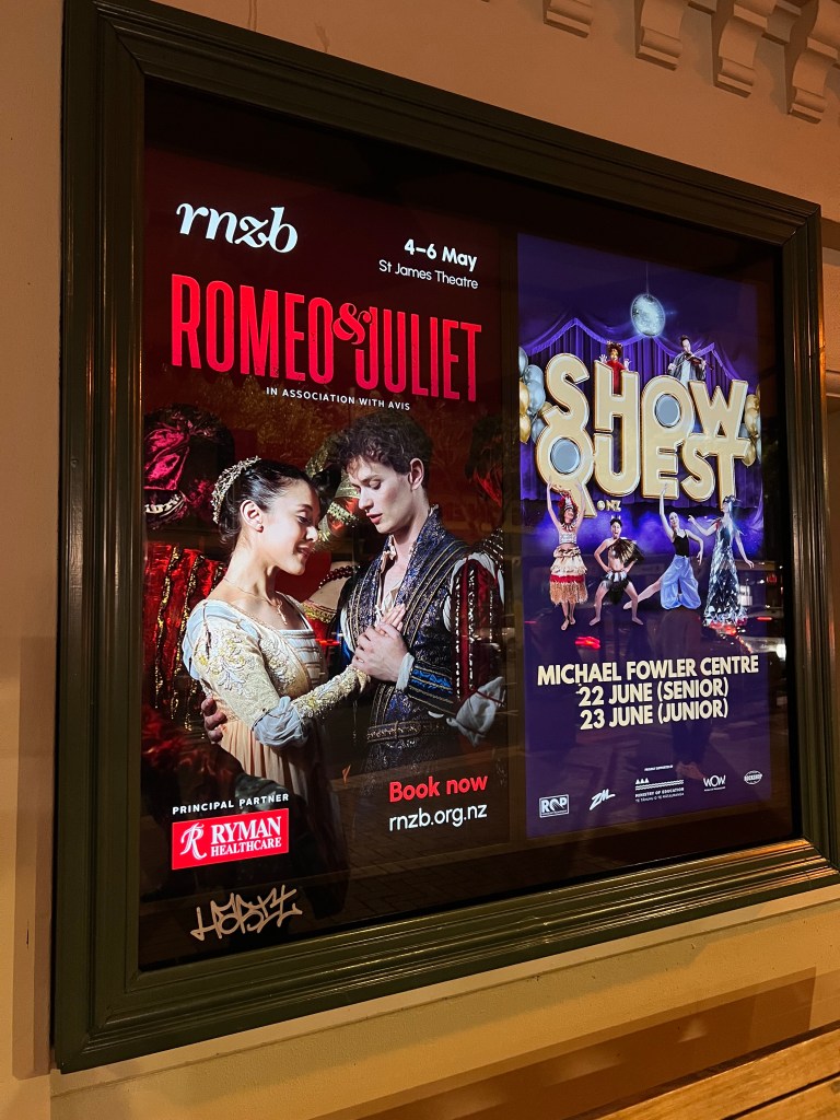 In Wellington, the odd couple went to the ballet. Celebrating their 70th anniversary, the Royal New Zealand Ballet, supported by the New Zealand Symphony Orchestra, premiered Shakespeare’s most loved love story, Romeo & Juliet. Despite the long-standing feud between the Capulet and Montague families of Verona, it is love at first sight for both Romeo and Juliet; neither realising until it is too late – they have already kissed – that their families are sworn enemies. The next morning, Juliet’s nurse passes a message to Romeo to meet her in the church and marry her if he truly loves her. After the secret wedding, as Romeo and his two buddies leave the church, they meet members of the Capulet family. A sword fight breaks out between the feuding parties and results in the death of Romeo’s good friend, Mercutio, who curses the senseless feud as he dies. Enraged by Mercutio’s death, Romeo does the one thing he knows he cannot do – it wouldn’t be a ballet otherwise – avenges his friend’s death and is banished from Verona, on pain of death. That night, the young couple consummates their secret marriage before Romeo prepares to flee Verona. Juliet accepts a plan to take a poison that will render her dead for 42 hours. Romeo does not get the message about this plan because the friar is suddenly quarantined in a house due to the plague. It is not known how Romeo knew to find Juliet in her tomb but he finds her dead and kills himself with poison that he happens to have. Juliet wakes up soon after and finding her husband’s body there, she stabs herself fatally with his dagger rather than live without him.