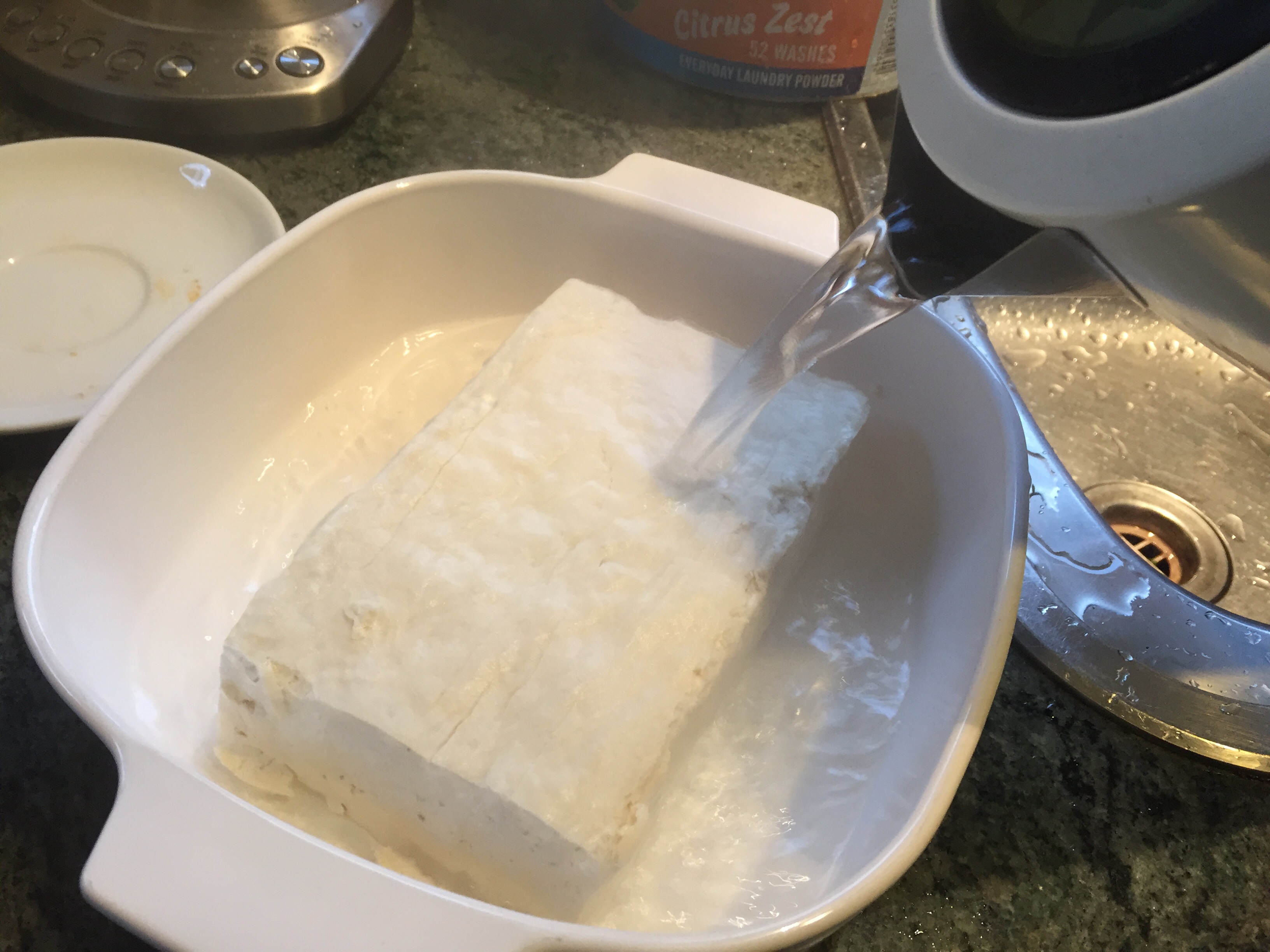2. Soak hard tofu in boiling water.