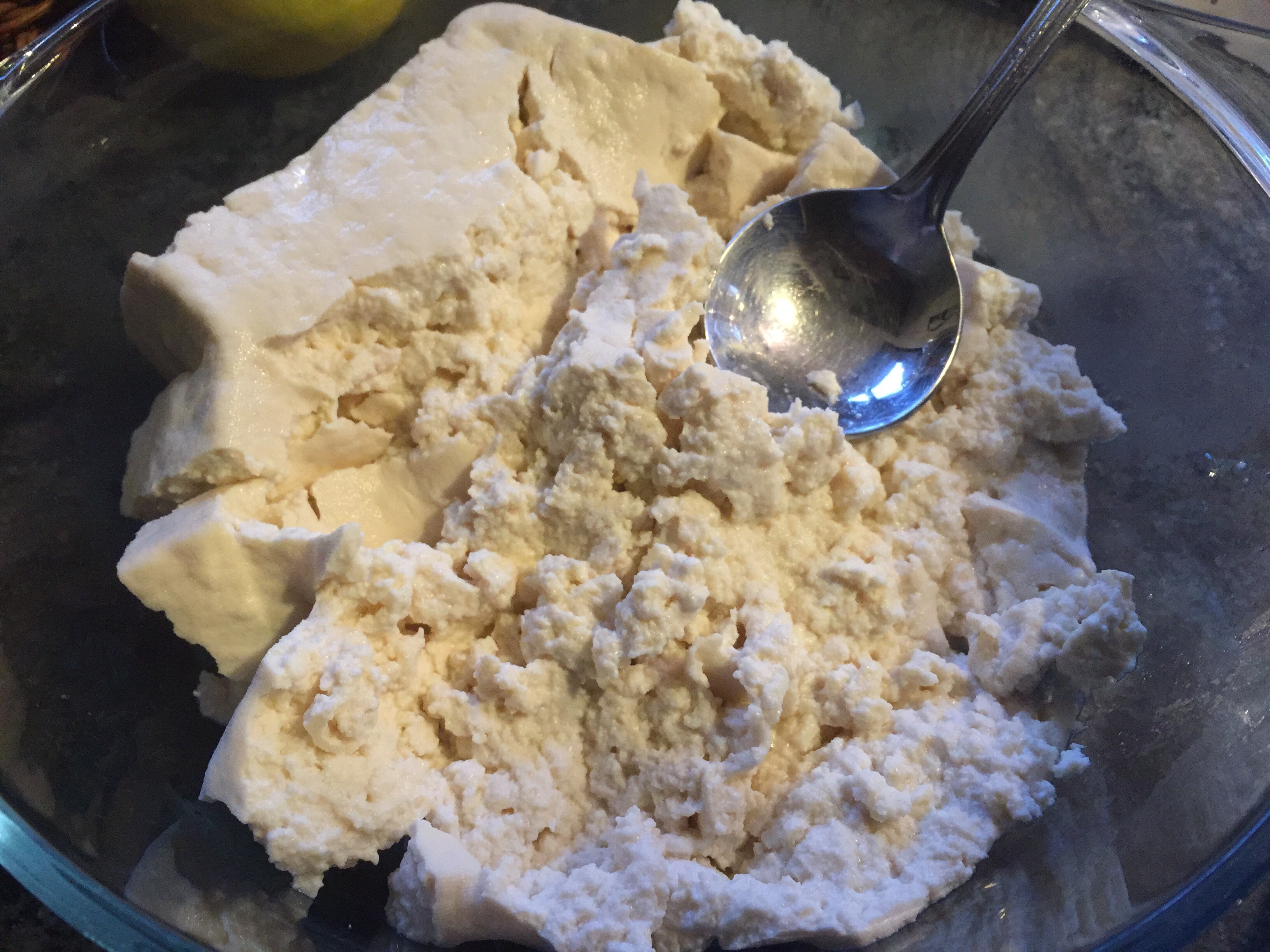 4. Break the tofu into crumbs.