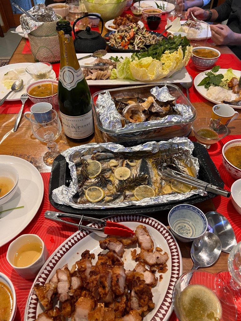 A typical Sunday lunch party for MaA pre-dinner pampering, a foot bath and a bowl of steaming hot chicken essence.